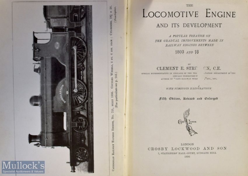 Railway - The Development Of The Locomotive by Clement T. Stretton 1903. A fine 264 page book with 128 drawings, illustrations and photographs of various British Locomotives 12 of these fold out. Giving a lot of technical specifications about Locomotives constructed over this 100 year period. In cloth board cover with illustration of a Locomotive of front cover, size 5¼” x 7½”.