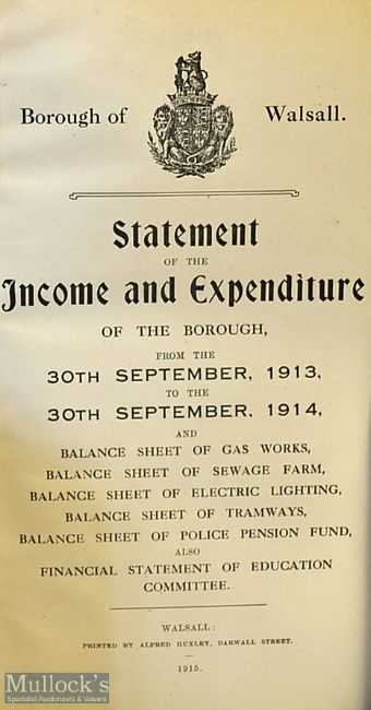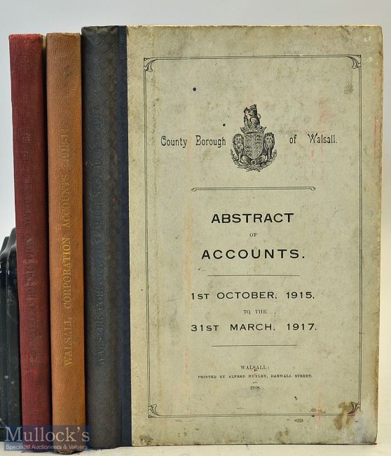 Borough of Walsall Statement of the Income and Expenditure 1913-1915 includes two books 1913-1914 and 1914-1915, plus 1915-1917 Abstract of Accounts, with some wear otherwise in A/G condition (3)