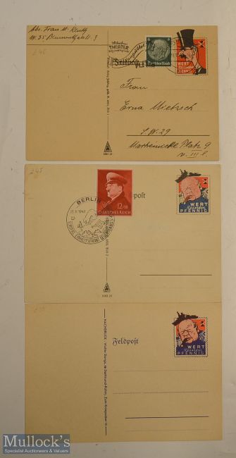 WWII German Propaganda Postcards 2x marked with Churchill stamp, with blank reverse, another inscribed to the back with postmarks, condition overall is G (3)