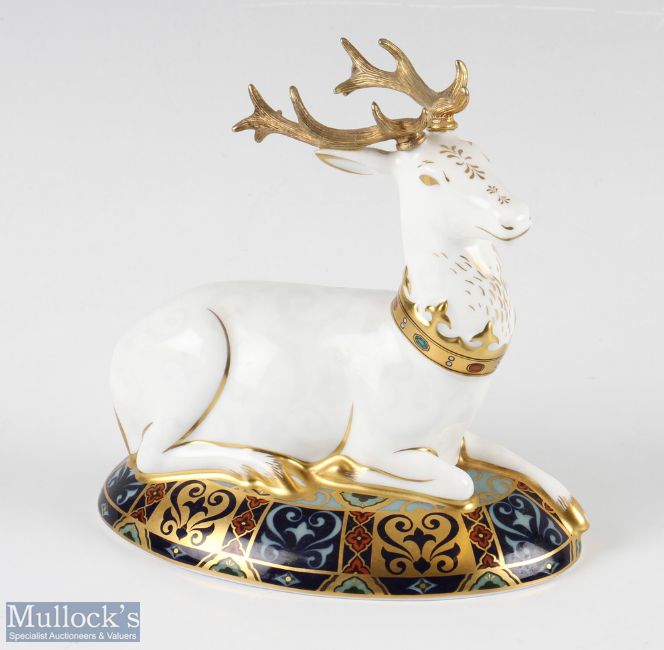 Royal Crown Derby The White Hart Limited Edition Paperweight of the Heraldic Beasts series, in an edition of 2,000, no stopper of box, good condition