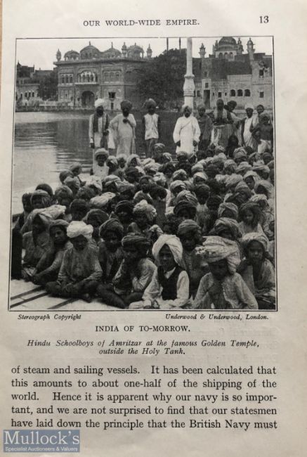 India – Golden Temple Print Original print showing school boys of Amritsar at the Sikhs sacred tank, Golden Temple. From a photo by Underwood & Underwood London c1900s, dimensions 18 x 12cm