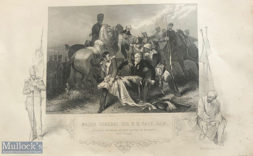 India - The battle of Moodkee Sikh wars original steel engraving c1850s Major General mortally wounded. By J Rogers. Dimensions: 27 x 17.5 cm