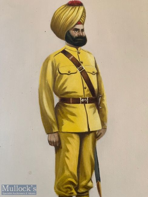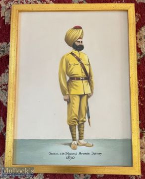 India - Original watercolour study showing a Sikh gunner of the 4th Hazara mountain battery. Housed in a period frame c1900s. Dimensions 32 x 25cm