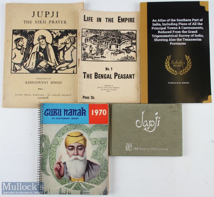 Assorted India related Books to include Japji The Immortal Prayer-Chant 1987, An Atlas of the Southern Part of India, Including plans of all the Principal Towns & Cantonments reproduction booklet, Life in the Empire No 1 The Bengal Peasant, Jupji The Sikh Prayer booklet and a Guru Nanak 1970 Calendar 5th centenary Diary blank inside (5)