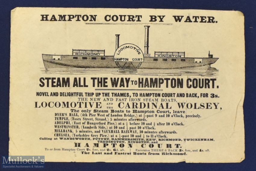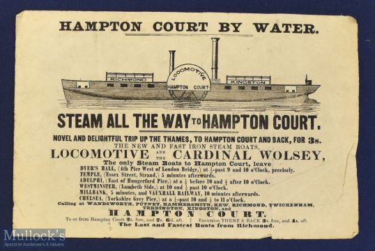 Hampton Court by Water Handbill ‘Steam all the way to Hampton Court’ on the new and fast iron steam boats, Richmond/Kingston, measures 19x12cm approx.
