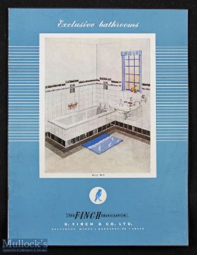 1948 Art Deco Style Bathroom Catalogue; B. Finch & Co Ltd, Belvedere Works, Barkingside, Essex. Dated October 1948 inside front cover. A very attractive 8 page multi-coloured catalogue finely illustrating what must have been some of the pre-war stock Art Deco stock of bathroom fittings. There are no prices, but in an age of shortages these would have been 3 or 4 times the pre-war prices, hence this expensive colour catalogue printed on fine semi-gloss paper, size 7¼” x 9½”.
