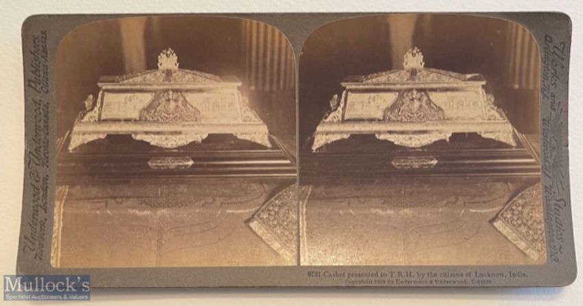 India – Lucknow c1900s original stereo view showing a casket presenting to T.R.H. by the citizens of Lucknow. Underwood & Underwood