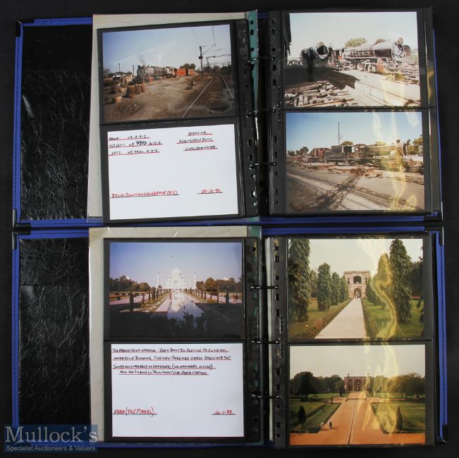 Quantity of Photographs of India consisting of scenes of Railway Locomotives, topographical content, Darjeeling Railway, Jaipur, Bareilly Loco Depot, Taj Mahal Agra), New Delhi, Moradabad Loco Depot, and more, contained within two albums (100s)