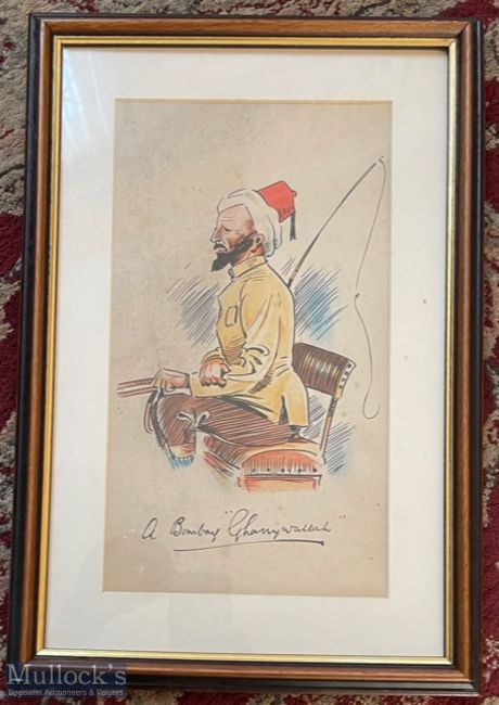 India - c1920s/1930s original water colour British Caricature study of the Bombay ‘GharryWalalah’ or horse rider - mounted in an acid free board and fine period wooden frame with gold gilt. dimensions 46 x 31cm