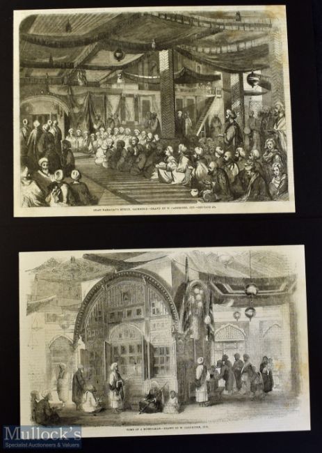 India & Punjab - Two original engravings by W. Carpenter Shah Hamadan's Musjid, Cashmere 1858 25x19cm and Tomb of a Mussulman 1858 25x16cm both laid to card with text on reverse (2)