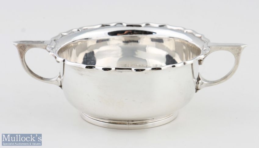 Hallmarked Silver Twin Handled Porringer Bowl with pie crust rim, hallmarked Sheffield 1929 by Cooper Brothers & Sons, width 17.5cm, weight 205 grams