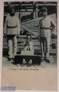 India Postcard c1900s Indian Police of Hong Kong with a coolie prisoner.