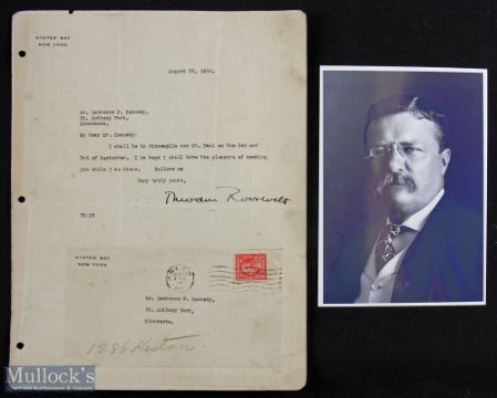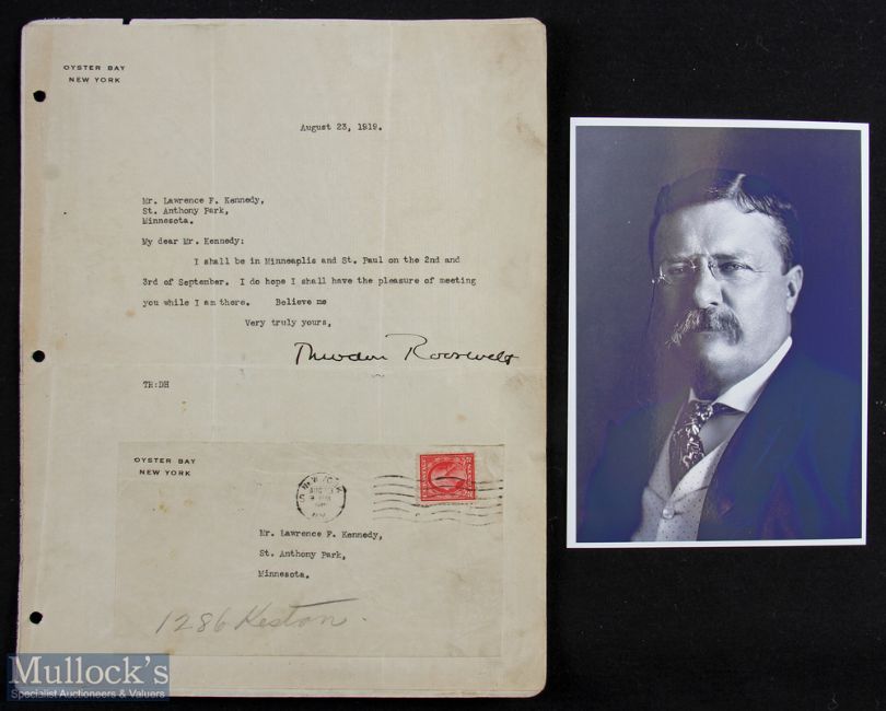 Autograph - Theodore Roosevelt (1858-1919) Signed Typed Letter dated 23 Aug 1919 with original envelope plus print, appears with holes pun, some folds noted