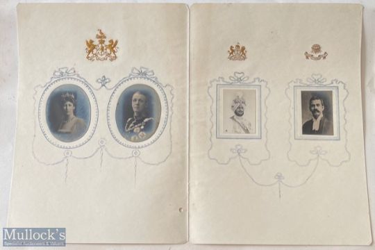 India – WWI c1919 original invitation for banquet held by the ruling princes of India at Delhi to honour the Indian delegates to the imperial war conference with gold gilt crests of Indian princely states including a real photograph of the Maharaja of Patiala Bhupinder Singh.