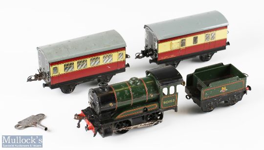 Hornby O Gauge BR Loco, Tender and 2 Coaches with original key