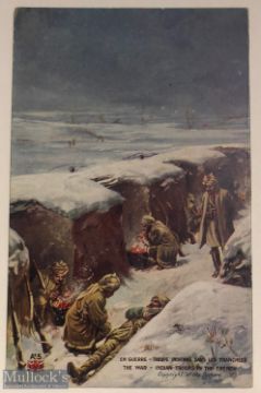 WWI Indian Military Postcard the Great War Indian troops freezing in the trenches. c1914