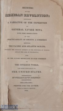 Mexico - Memoirs Of The Mexican Revolution by William Davis Robinson 1820 Book an extensive 396 page book giving a lot of detail about the long independence war from Spain from 1808, still going on when this book was written. Mention at length San Martin, General Minas, General Bolivar & others involved. Part of the Introduction on missing, but the main 396 pages of the book in complete, thus this scarce book is offered at a very reasonable price. Well Bound in modern cloth board binding