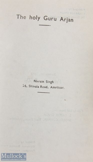 Singh, Narain - 1967 The Holy Guru Arjan Book printed Amritsar, in blue cloth boards, internally clean, slight wear to covers