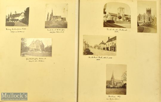 Victorian Photograph Album/Railway Engine Album – Compiled by Geoffrey Egerton Warburton, probably related to the Warburtons of Arley Hall. Contains over 120 privately taken photographs, mostly 3 ¼” x2 ¼” approx. with about 28 larger images, many with title dates, taken mostly between 1867 and 1871 with some later. Contains rare photograph of Kitson’s coupled Engine, Great Eastern Railway, Hunstanton Railway Station 1868, 2 ¼” x 3 1/8”, a sharp image with railway staff, also contains photographs of Arley Hall, Leih on Mendip, Midhurst, Dover, Leamington etc, covers detached, spine lacking