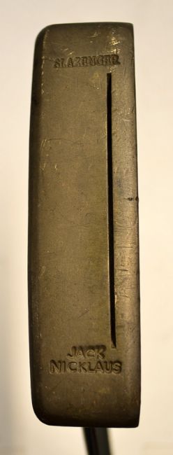 Scarce Karsten Co ‘Jack Nicklaus’ Ping Slazenger putter stamped Ping to the heel and Cushin to the toe, Jack Nicklaus and Slazenger to each end of the sole, still retaining Ping decal label to the shaft with original pistol grip