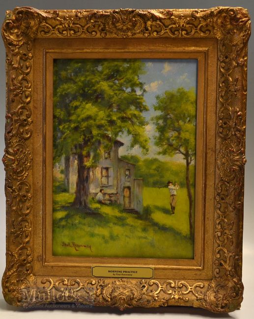 PAUL ROSENWAY – titled Morning Golf Practice - oil on canvas laid on board signed to the lower left – image 12.5 x 8.75” – in gilt swept frame 18.5 x 15”. Note From The David Easby Estate