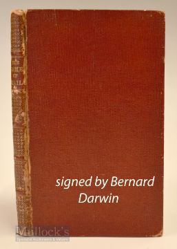 Bernard Darwin personally signed library book – Lauthier’s “Jeu de Mail” signed Bernard Darwin to the first blank free end plate - this book originally printed in 1717 is a later translation by James Cunningham titled “New Rules for the Game of Mail” with introduction by Andrew Lang dated November 1910, various illustrations - bound in the original leather boards with gilt title to ribbed spine and gilt edges pages - front board is split on the outside and needs rebinding inside but internally very clean and sound. Rare. Note From The David Easby Estate