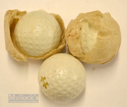 3x Good Large Dunlop Square Mesh Golf Balls – 2x still with some of the original paper wrapping – possibly repaints (G)