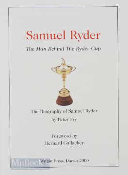 Fry, Peter - signed – “Samuel Ryder – The Man behind The Ryder Cup” publ’d in 2000 ltd ed no 269/500 in the original red and gilt cloth boards and spine and dust jacket - with foreword by Bernard Gallacher– appears unread hence (VG)