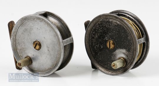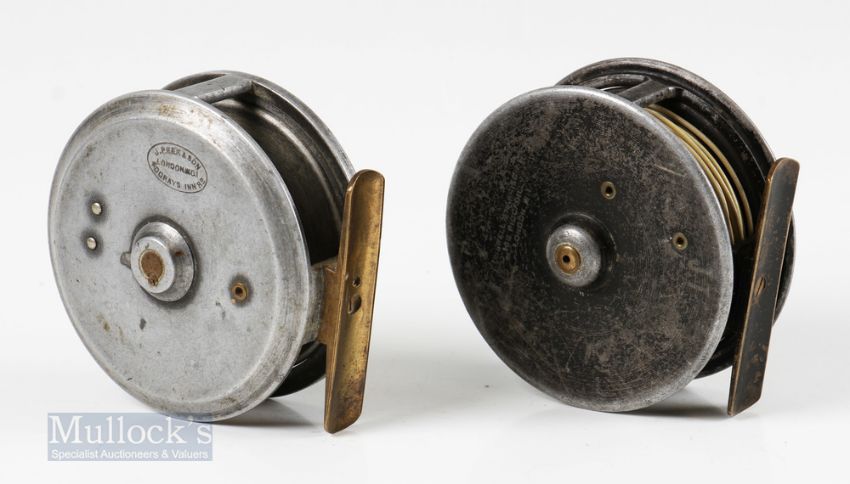 Cogswell & Harrison London 3” alloy trout reel with maker’s details to back plate, constant check, plus a J Peek London 3” alloy trout reel with maker’s details to backplate, brass foot, constant check – both with signs of surface wear, spin and run well otherwise (2)