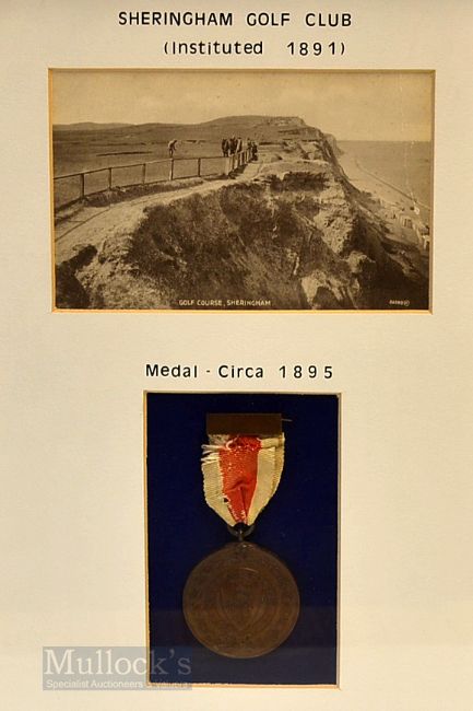 Late 19th c Sheringham Golf Club (Est. 1891) large bronze medal c1895 – c/w red and white ribbon and bronzed bar – mf&g c/w period postcard showing the course and sea cliffs – overall 14 x 10.5” – comes with a letter of provenance from the club dating the medal. Note From The David Easby Estate