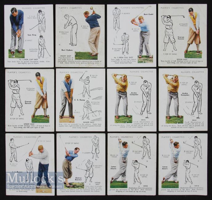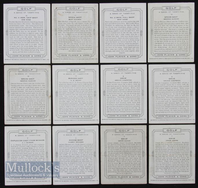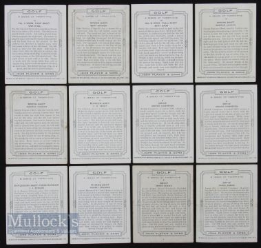 Selection of 1939 John Player & Sons ‘Golf’ Cigarette cards large format features 1(x2), 4, 7, 8(x2), 13, 14(x2), 16, 17 and 18 – mixed condition F/G overall (12)