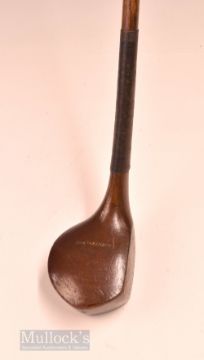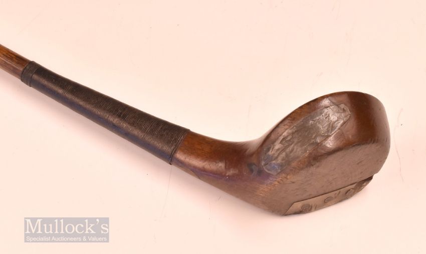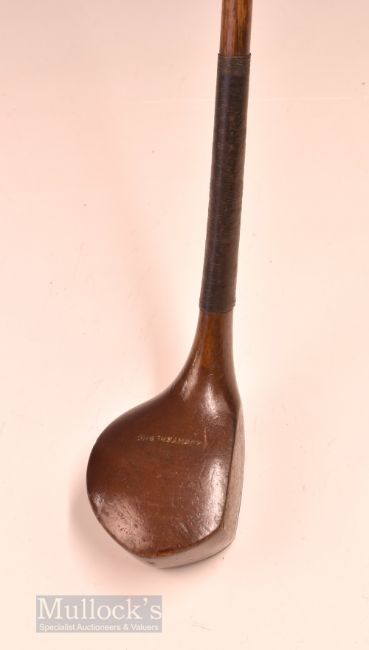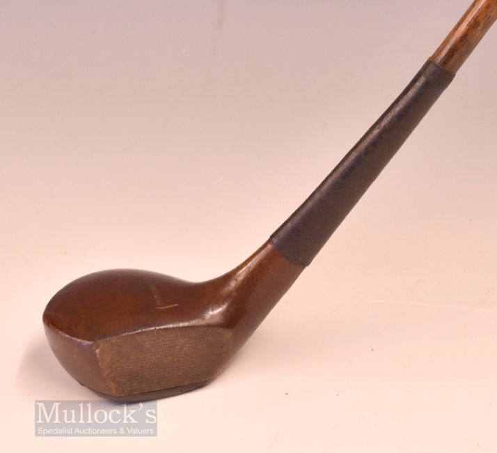 Auchterlonie St Andrews small dark stained late scare neck deep faced persimmon short driver - fitted with original leather grip with underlisting – overall 39”. Note From The David Easby Estate