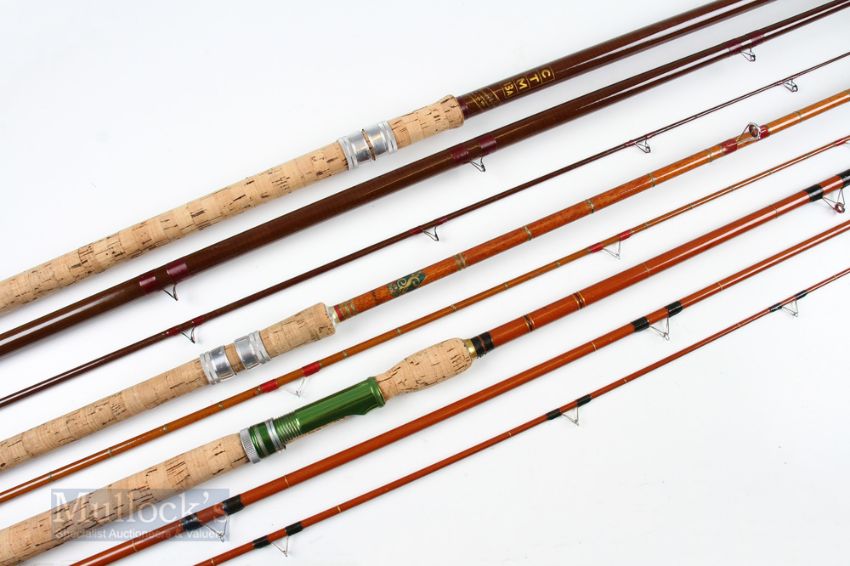 Bruce & Walker B James & Sons 12ft Float Rod 3 piece with 28in handle with sliding reel seat in mcb, together with Sealey Black Arrow 10ft 6in 3 piece rod with red agate butt and tip ring and a H S S Ltd, Sheffield 9ft 6in 2 piece rod with 24in handle and red agate butt / tip ring. (3)