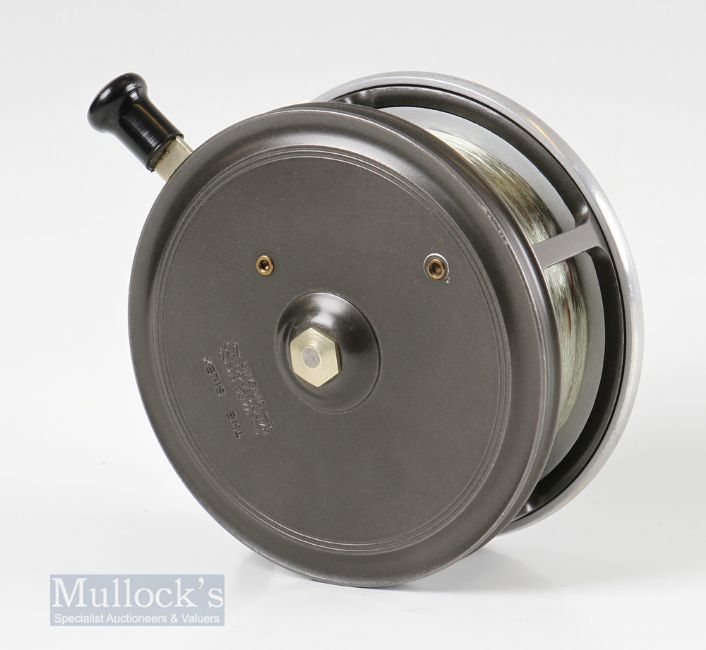 Hardy The Silex 4” Alloy Casting Reel with twin black handles, brake lever, ribbed brass foot runs smooth with check, good condition with very light wear