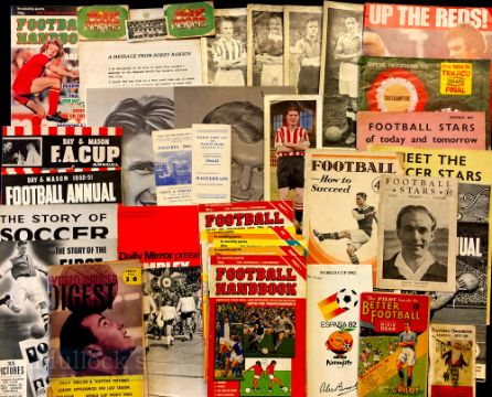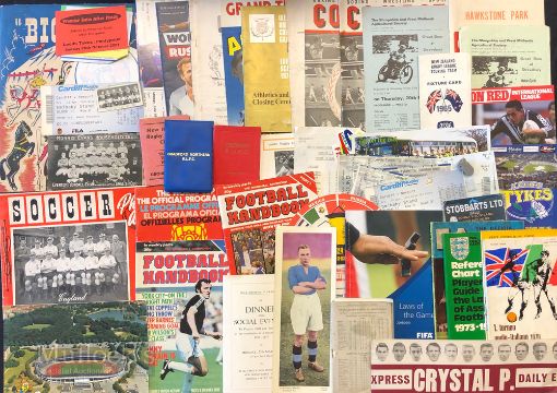 Box of Mixed sports Programmes and Ephemera to include Football, Rugby Union, Boxing, Ice Hockey, Rugby League, Football postcard and a football scrapbook 1950s Programmes of mixed sports, Cigarette cards etc a good mixed lot (Qty) Box