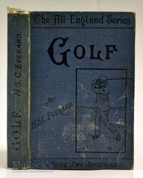 Everard, H S C - “Golf In Theory and Practice – Some Hints to Beginners” reprinted 1910 – in the original blue pictorial cloth boards – c/w 22x illustrations and wonderful advertisements to the front and rear – some wear to boards, some discolouration to the front and rear free end plates otherwise good tight copy with replica dust jacket. Note From The David Easby Estate
