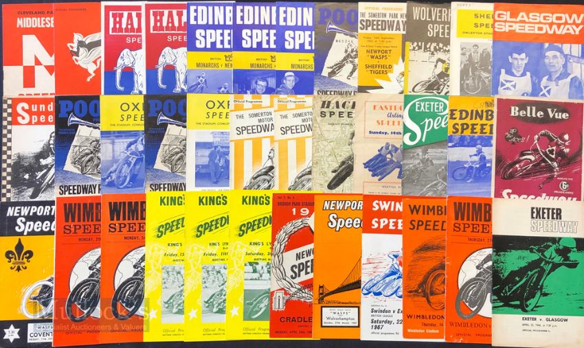 Speedway League and Cup Programmes from 1964-1969 to Include Teams of Belle Vue, Edinburgh, Exeter, Hackney, Oxford, Sunderland, Wolverhampton, Poole’s, Halifax, Newport, and more. The condition of these is Very good, none have been written in. A good clean lot. (#67)