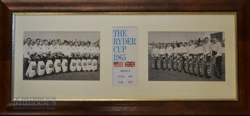 1965 Official Ryder Cup Team black and White Photographs – played at Royal Birkdale GC and won by USA 19.5 - GB&I 12.5 both photographs mounted side by side – US team included non-playing captain Byron Nelson Lima, Boros, Palmer, Venturi, Casper, Littler, Marr, January, Potts and T Jacobs and the Great Britain team included nonplaying captain Harry Weetman, Christie O’Connor, Peter Alliss, Neil Coles, George Will, Bernard Hunt, L Platts, Peter Butler, Dave Thomas, et al mf&g 12.25” x 26.5”. Note From The David Easby Estate