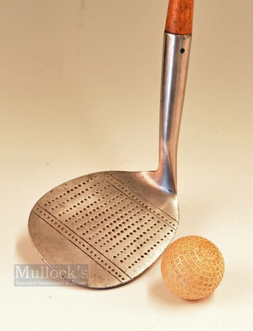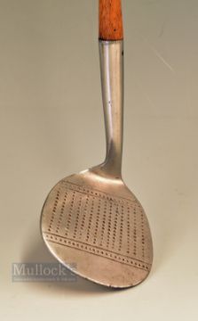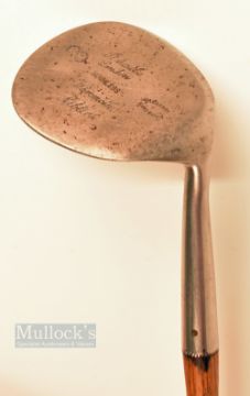Cochrane’s Mammoth niblick stamped with retailers details Stokes and Co London, multi-dot punched face markings – head measures 4” x 3.5” and fitted with black leather grip