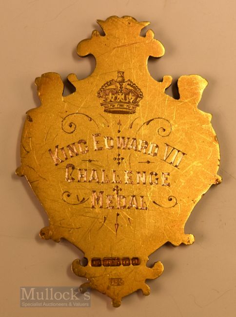 1903 King Edward VII Challenge 15ct Gold Medal – c/w embossed golfing scene on the obverse (15ct) and engraved on the reverse with the Crown and the Challenge Medal. wt 19.87gms. Note From The David Easby Estate