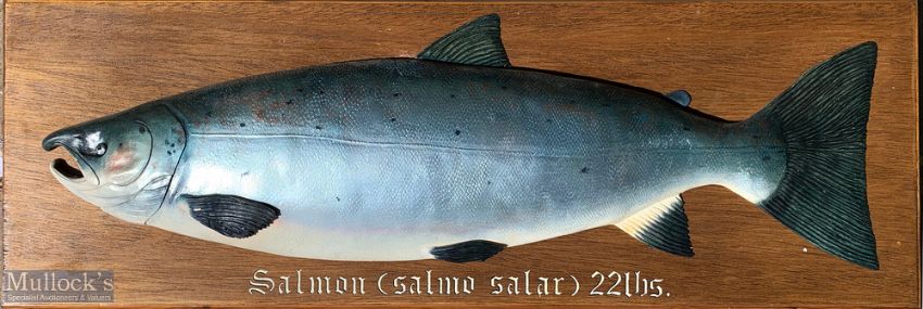 Cast Salmon Mounted on Wooden Board – fish size 22lbs, board size 107cm x 35cm