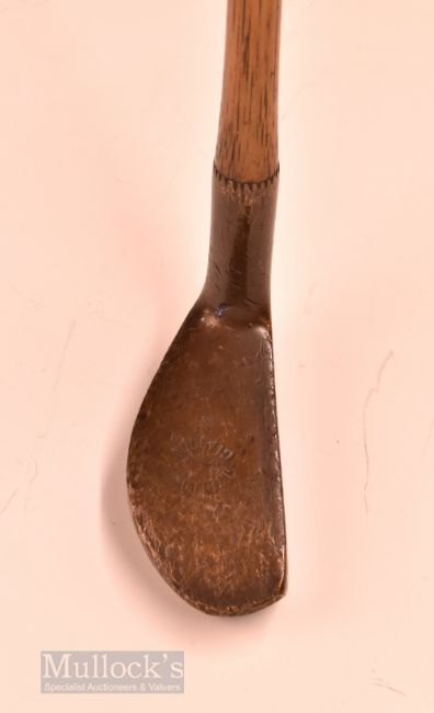 ZoZo brass mallet head putter with metal face insert – stamped J Tulloch Glasgow to the crown with full length original grip