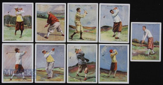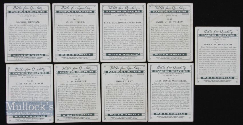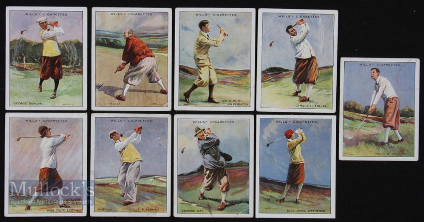 Selection of 1930 WD & HO Wills ‘Famous Golfers’ Cigarette cards large format, features 4, 11, 12, 13, 17, 18, 21, 23 and 24 – mixed condition A/G (9)