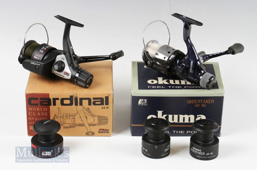 Abu Garcia Cardinal 54R Spinning Reel with spare spool, original box and instructions, together with Okuma Undertaker UR40 fixed spool reel with spare spool and box, both appear unused (2)