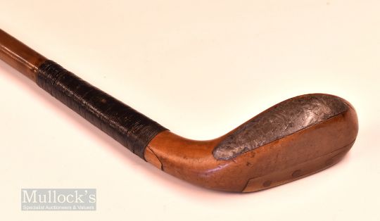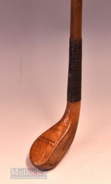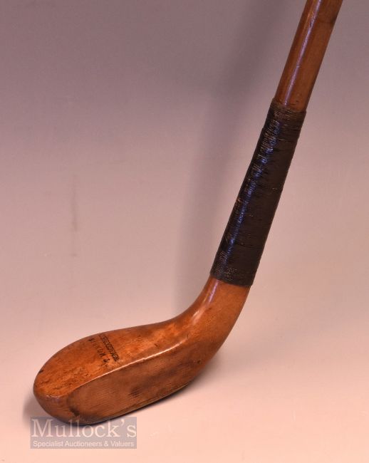 Rare and most unusual Tom Morris St Andrews light stained dog wood compact and heavy scare neck putter with unusual whole cane shaft – the head stamped with Tom Morris and W MACDONALD to the crown and fitted with black leather grip with underlisting. Note From The David Easby Estate