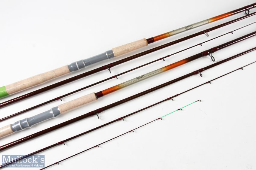 2x Mythos H D Feeder 12ft carbon rods 3pc with spare tip, both appear unused with plastic wrap on handles, with mcb