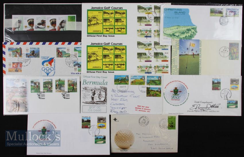Selection of Overseas Golf First Day & Commemorative Covers and Stamps such as 1971 Bermuda, 1980 Christmas Island, 1993 Jamaica, 1976 Johannesburg, 1993 Royal Selangor GC, 1995 New Zealand, et al – good condition overall (11)