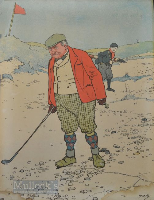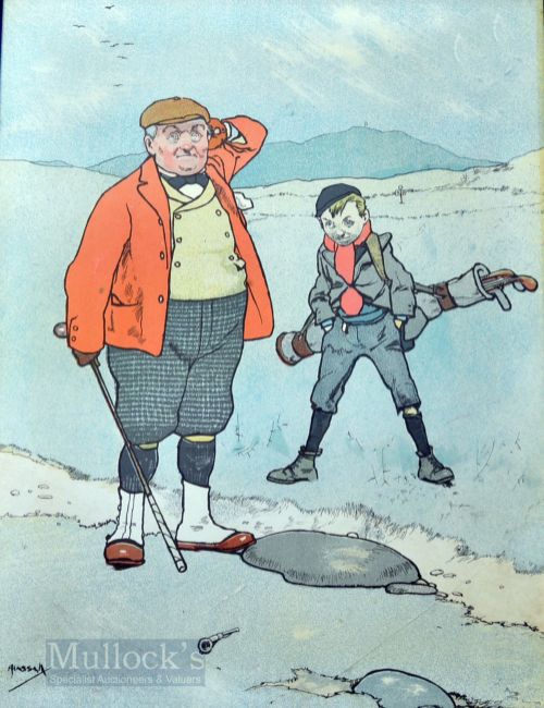 John Hassall (1868-1948) pair of humorous colour golf prints – from a portfolio of 7 prints originally publ’d in 1899 – one with minor creases and the other had stains to both lower corners - in matching frames overall 17.5 x 13.5” 20”