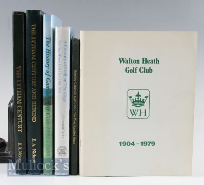 Golf Club Histories (6) to include 2x Royal Lytham and St Anne’s titled ‘The Lytham Century’, and ‘The Lytham Century and Beyond’; The History of Ganton Golf Club 1891-2006, A Century of Golf on The Gogs 1901-2001, Hankley Common Golf Club and Walton Heath Golf Club 1904-1979 mainly HBs overall (G)