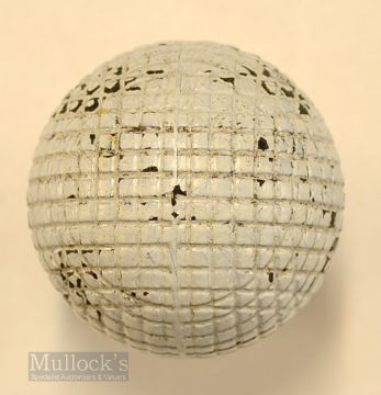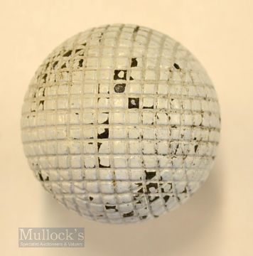 Good Large Guttie Moulded square mesh pattern golf ball – retaining most of the original white paint finish. Note: From "The David Easby Estate”